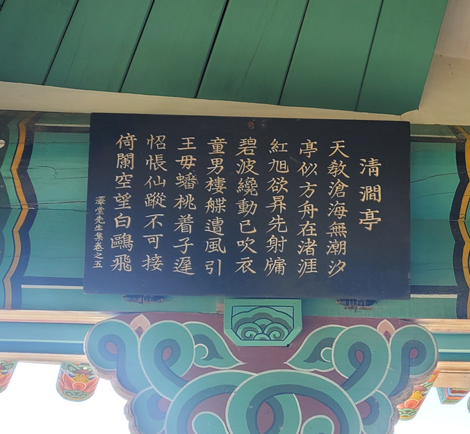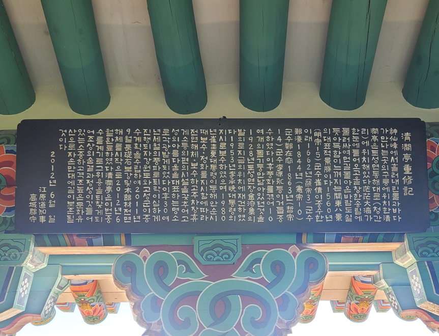 청간정의 현판은 이승만 대통령이 썼다고 해요. 누각 안으로 보이는 단청도 단아하고 너무 아름다웠습니다.