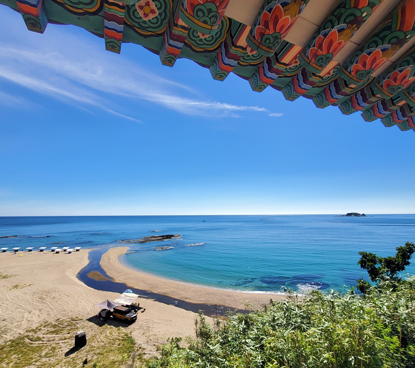 사실 청간정에서는 사방이 자연이라 어느 곳에서든 사진을 찍어도 포토존이 됩니다. 정자 안에서 바다를 보는 뷰, 청간정 다리 위에서 본 정자의 전경도 근사하게 나왔어요.