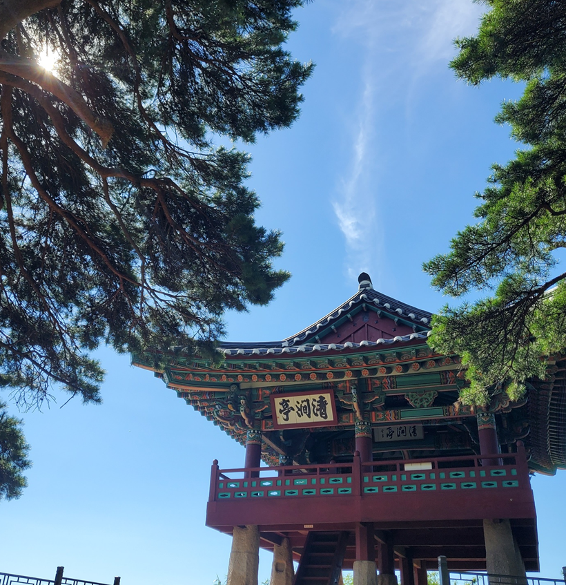 입구에서 계단이 조금 나오는데 그리 높지 않은 거리에서 곧 멋진 정자 하나가 나오게 됩니다. 사실 이곳도 포토존이었어요. 사진 찍으니 너무 멋지게 나왔습니다.