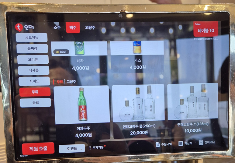 소주도 판매하는데 소주는 참이슬과 처음처럼 각 4,000원 씩이었습니다.