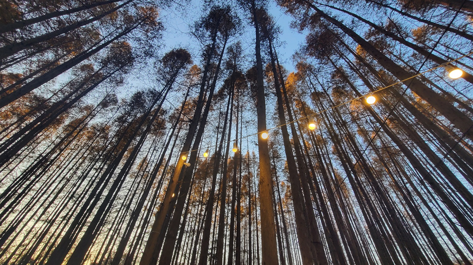 알전구도 달려 있어서 날이 조금 저무니 더 예쁘더라고요.ㅎㅎ 시원하게 산림욕 하기 좋을 것 같습니다. ㅎㅎ