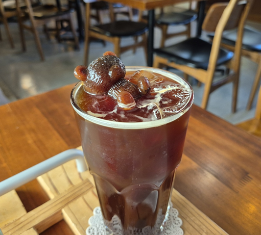 아이스 아메리카노는 곰돌이 커피 큐브가 들어 있어 너무 귀여웠습니다! 물을 얼린 얼음이 아니라 녹으면서 커피가 싱거워지지 않았고, 계속 진한 커피의 맛을 즐길 수 있어서 좋았습니다. ㅎㅎ