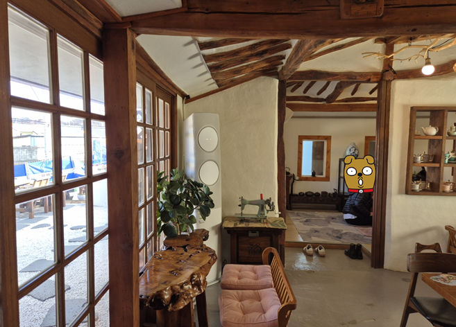 한옥 구조를 그대로 살려 이용할 수 있었는데요, 안쪽 방은 넓은 테이블이 있어 최대 8명 정도의 단체 손님들이 사용하기 좋아 보였습니다! 이미 테이블을 이용 중이셔서 사진을 찍을 수 없었네요.ㅠㅠㅠ 그리고 좌식으로 이용할 수 있는 룸이 두 개 있어서 거동이 불편한 어르신이나 아이들이 있는 경우 편하게 눕히거나 쉴 수 있을 것 같았습니다. 주말에는 방 이용 시간이 2시간이니 참고하세요!