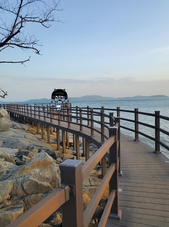 둘레길에서도 바다는 너무 아름다웠습니다~ㅎㅎㅎ 석양 지는 모습을 바라보고 있으니 시간 가는 줄 모르겠더라고요! 꼭 그대로 모든 게 멈춘 것만 같았어요. ㅎㅎ