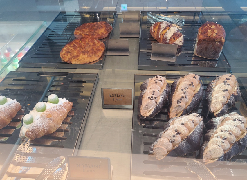 입구에서 좌측으로 빵들이 있는 쇼케이스, 음료를 주문하는 카운터가 있습니다. ㅎㅎ
