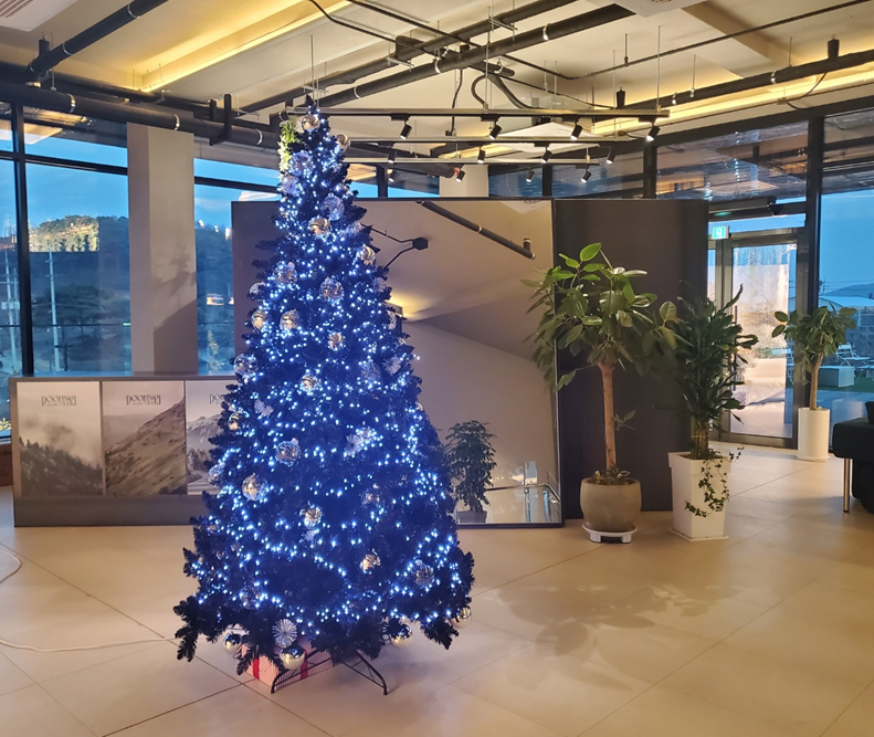 온실로 들어가면 바로 예쁜 트리를 볼 수 있어요.ㅎㅎ 다들 트리맛집이라고 하는 이유가 있었네요.ㅎㅎ 날도 차츰 어두워져 트리 빛이 더욱 아름다웠습니다. ㅎㅎ