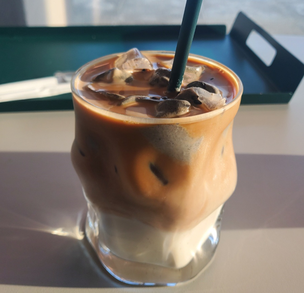 저는 음료와 빵을 먹기 위해 포토존은 기다리지 않았습니다. ㅎㅎ 제가 주문한 시그니처 옥수수 크림라테입니다. ㅎㅎ 초당 옥수수 우유 맛 같이 느껴졌고, 잘 저어서 먹지 않으면 내용물이 갈아 앉아서 먹기 조금 불편하더라고요! 잘 저어 드시며 문제없답니다. ㅎㅎ 그리고 토핑으로 올라간 밭두렁 같은 옥수수 알갱이들이 저는 더 맛있었는데 빨대로 먹으면 구멍에 막히기 때문에 저는 빨대 없이 그냥 마셨어요.ㅎㅎㅎ