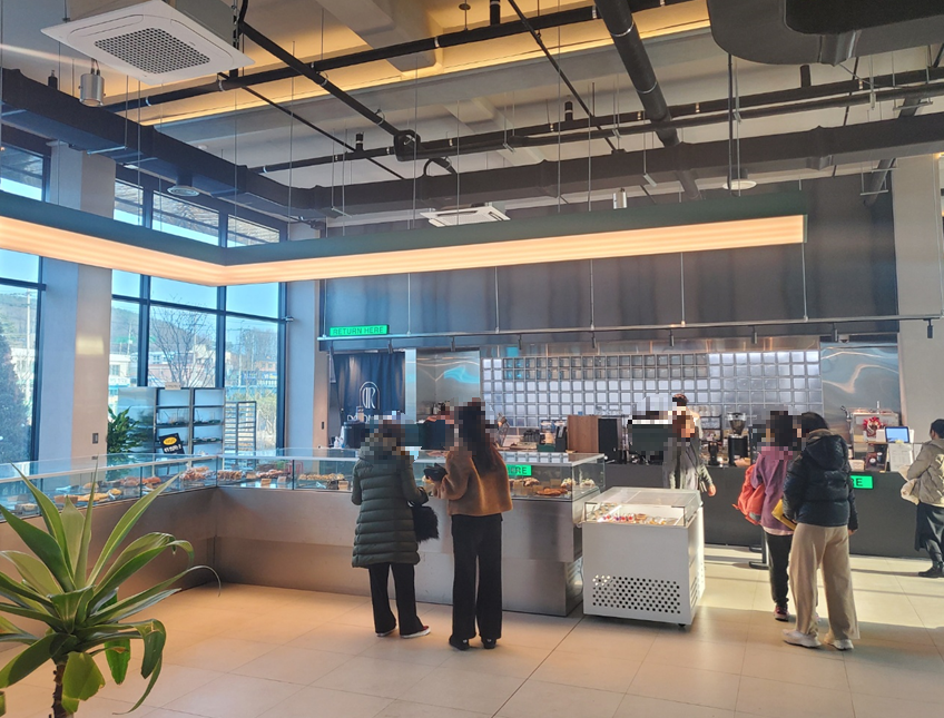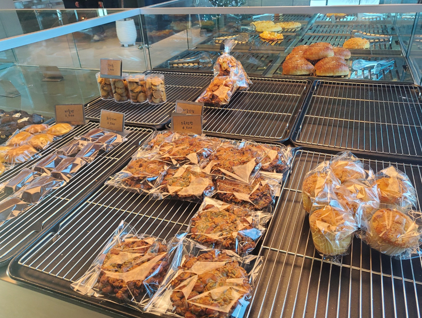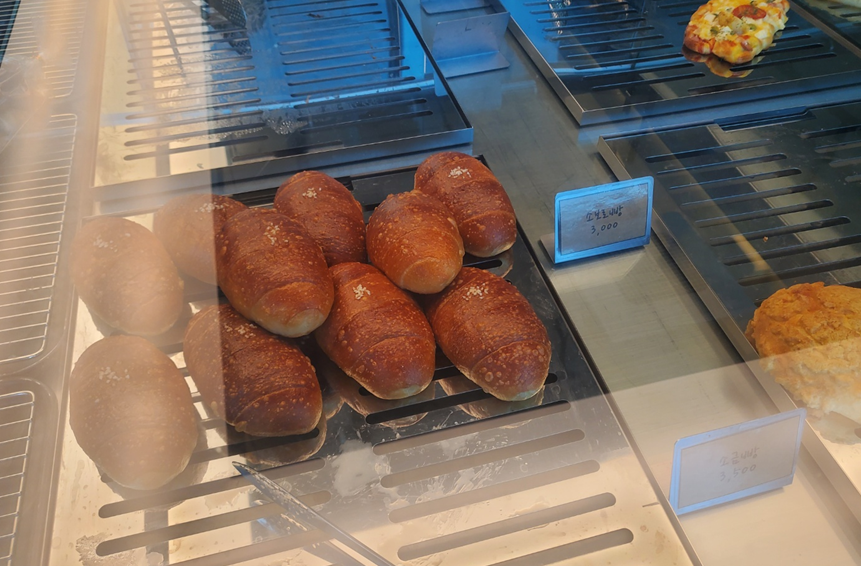 입구에서 좌측으로 빵들이 있는 쇼케이스, 음료를 주문하는 카운터가 있습니다. ㅎㅎ