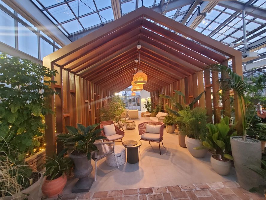 모퉁이별로 콘셉트가 나누어져 있는데 본관 빌딩보다는 보다 자유롭고 가볍게 즐길 수 있는 공간들이 많았습니다. ㅎㅎ 어린이와 함께 온 가족도 계셨는데 저도 조카랑 같이 오고 싶더라고요.ㅎㅎ 아기자기한 인테리어 소품들도 많았고, 무엇보다 온실은 지붕까지 투명하기 때문에 해가 지는 시간에 따라 분위기가 천차만별이라 너무 좋더라고요! 그리고 온실 모든 공간이 사진 찍기 좋은 곳이었습니다. ㅎㅎ지인과 왜 온실로 바로 오지 않았을까 후회도 조금 했습니다. ㅎㅎㅎ 아늑하고 화분도 많아서 그런지 공기도 답답하지 않고 꽤 쾌청하게 유지되고 있었어요. ㅎㅎ 온실 끝에는 클림트, 고흐 등 유명 작가들의 그림도 걸려 작고 소박하게 전시회처럼 꾸며져 있습니다. ㅎ