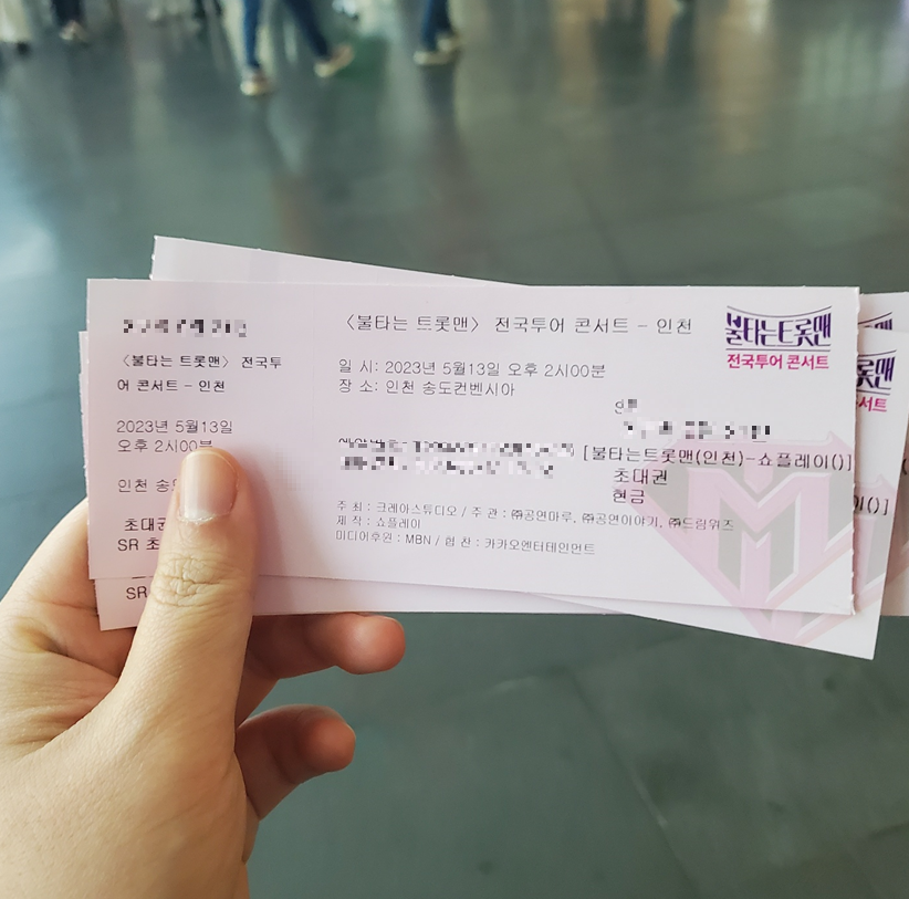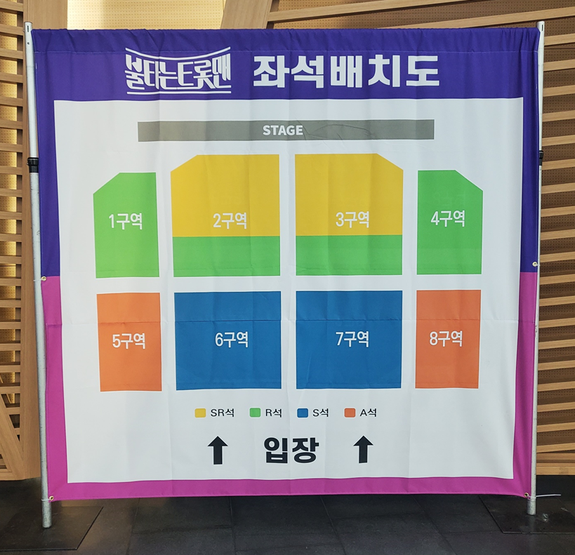 오늘 처음으로 트로트 콘서트를 다녀오면서 트로트도 좋은 곡들이 많고, 즐거운 시간을 보낼 수 있었던 것에 기분이 좋았습니다! 다만 몇몇 매너 없는 분들이 계셨는데, 그런 분들에 대해 제재하지 않는 스텝이나 경호팀들이 조금 당황스러웠어요! 제가 앉았던 자리 앞에 자리가 비어있었는데, A석에 앉아 계시던 분들이 공연 도중에 와서 앉으시더라고요! SR석과 A석은 금액 차이가 꽤 난다고 알고 있는데, 스텝들은 바로 앞에서 그냥 보고만 계셔서 또 한 번 당황하게 되었습니다..ㅎ