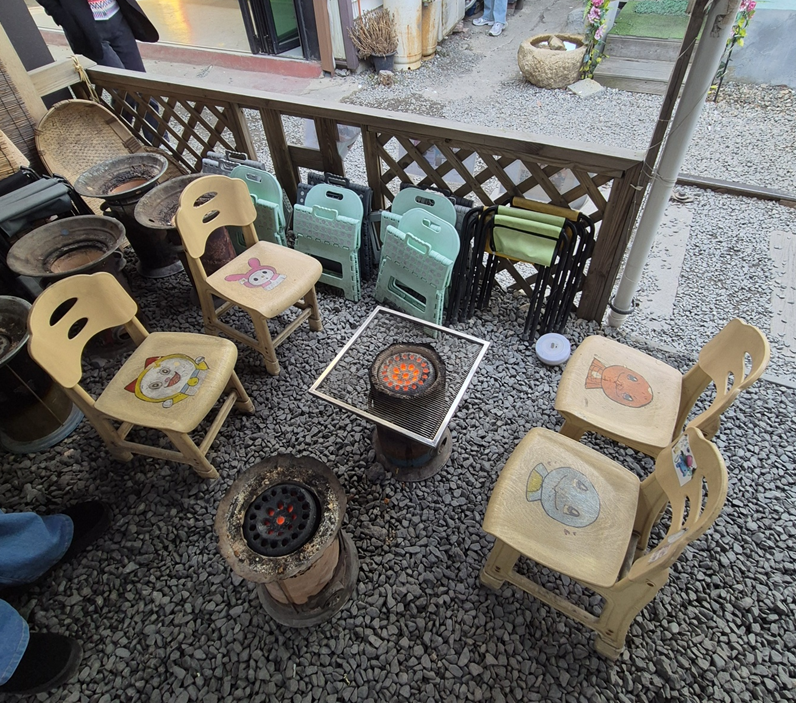 직접 연탄불에 쫀득이나 간식들을 구워 먹을 수도 있었어요. 무작적 들어 가시는 것보다 끝까지 가 보고 마음에 드는 곳으로 들어가시는 것이 좋은 것 같아요.ㅎㅎ