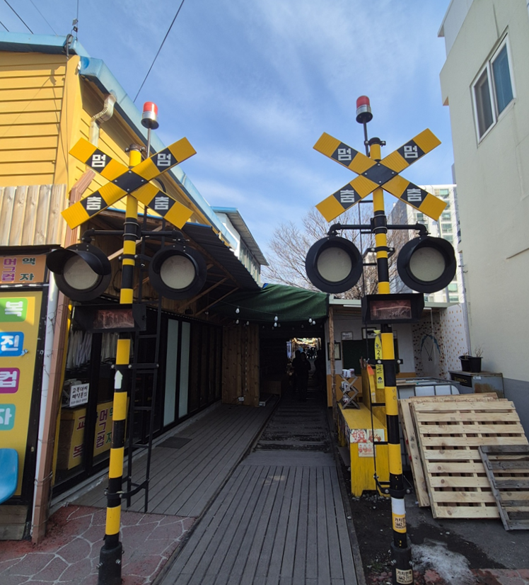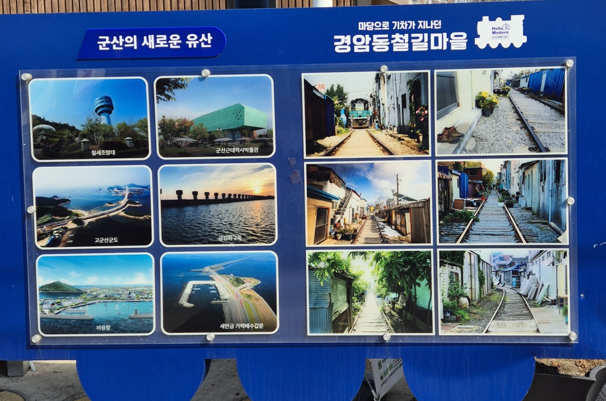 군산 경암동 철길마을도 많이 관광하는 관광지라고 합니다.ㅎ 원래는 기찻길을 따라서 집들이 가깝게 붙어 있던 동네였는데 실제 기차가 다니던 옛날에는 주민들이 철길을 따라 생활 도로로 이용했다고 합니다. 지금은 기차가 다니지 않고 관광지로 유명해지게 되었습니다.ㅎ 입구부터 옛 시절을 생각나게 하는 요소들을 볼 수 있습니다. ㅎㅎ