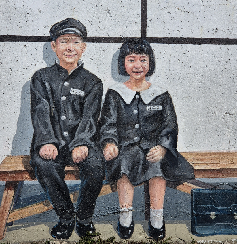 이 벽화는 옆에 기대서 같이 앉아 있는 척 사진 찍기도 재미있더라고요.ㅎㅎㅎ 귀여운 학생들이지요.ㅎㅎ
