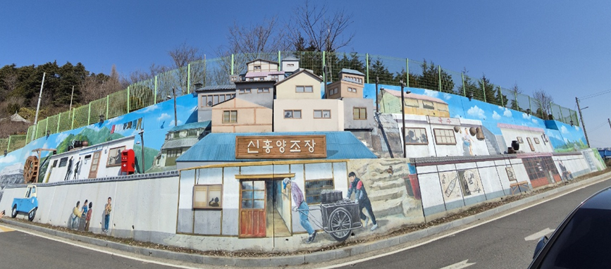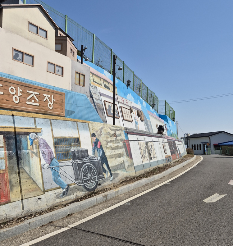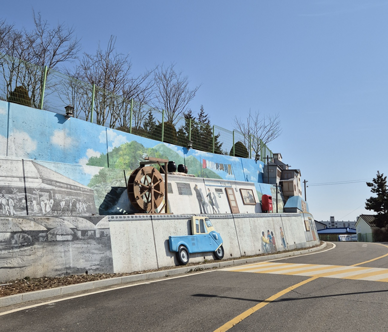 옹벽 한 쪽에 이렇게 많은 벽화들이 꾸며져 있습니다.ㅎㅎ 이게 다가 아니라 코너를 돌면 더 있어요.ㅎㅎㅎ