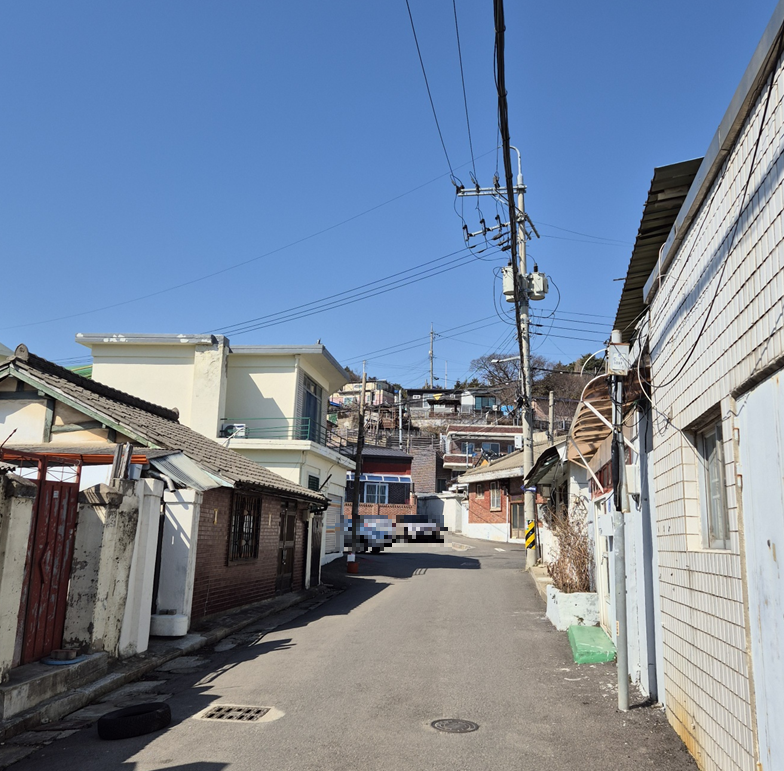 조금 걷다보면 파란색 지붕이 있는 주택이 하나 나옵니다.ㅎㅎ 바로 김수미 님이 사셨던 곳입니다.