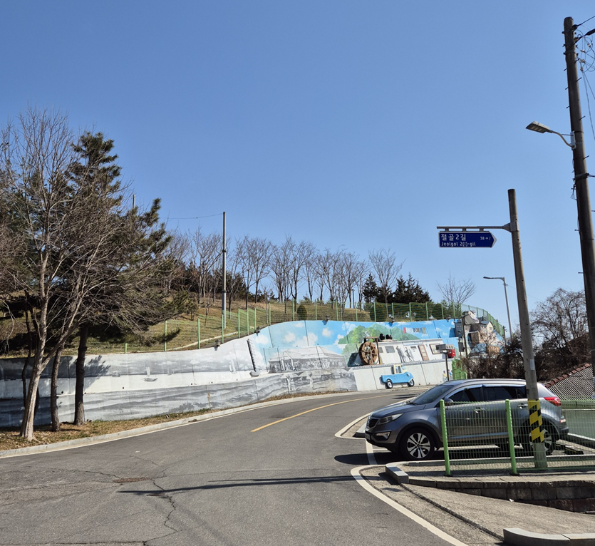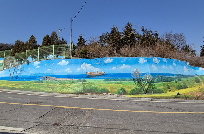 옹벽 한 쪽에 이렇게 많은 벽화들이 꾸며져 있습니다.ㅎㅎ 이게 다가 아니라 코너를 돌면 더 있어요.ㅎㅎㅎ
