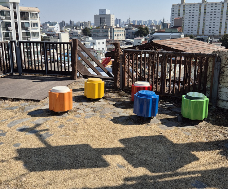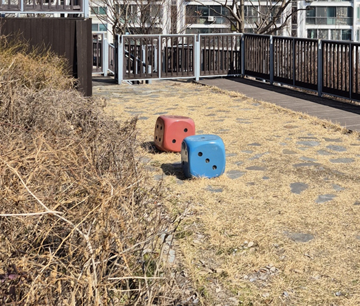 벤치도 평범하지 않고 공깃돌이나 주사위로 되어 있어요.ㅎㅎ