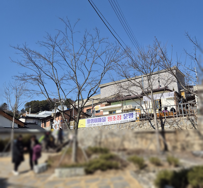 바로 보이는 것이 말랭이마을 양조장이에요. 말랭이 마을의 시작점이라 볼 수 있어요.ㅎㅎ