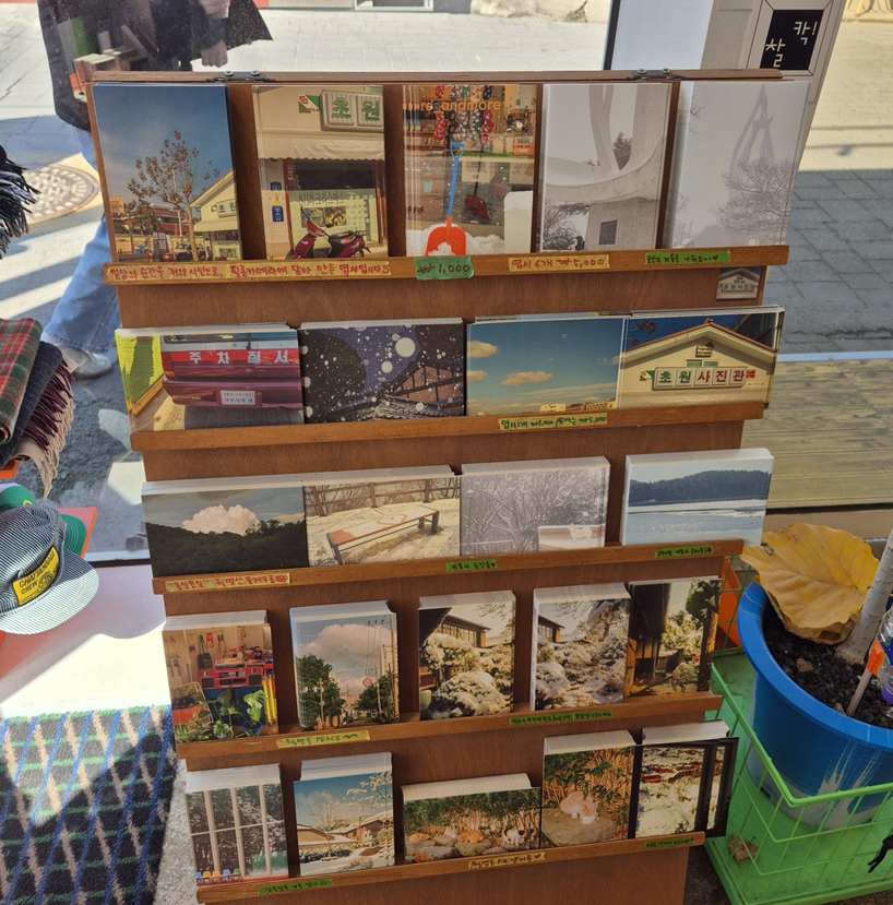 저희가 이 곳을 온 이유는 예쁜 엽서들이 가장 많은 것 같아서였어요.ㅎㅎ 어떤 기념 엽서를 구매할까 고민을 한참 하다가 군산하면 떠오르는 초원사진관 간판 한 장을 선택했습니다.ㅎㅎ