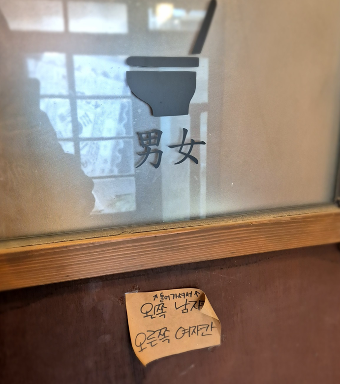 화장실은 입구가 하나인데 내부에서 남, 여가 나뉘어 있으니 당황하지 마세요~