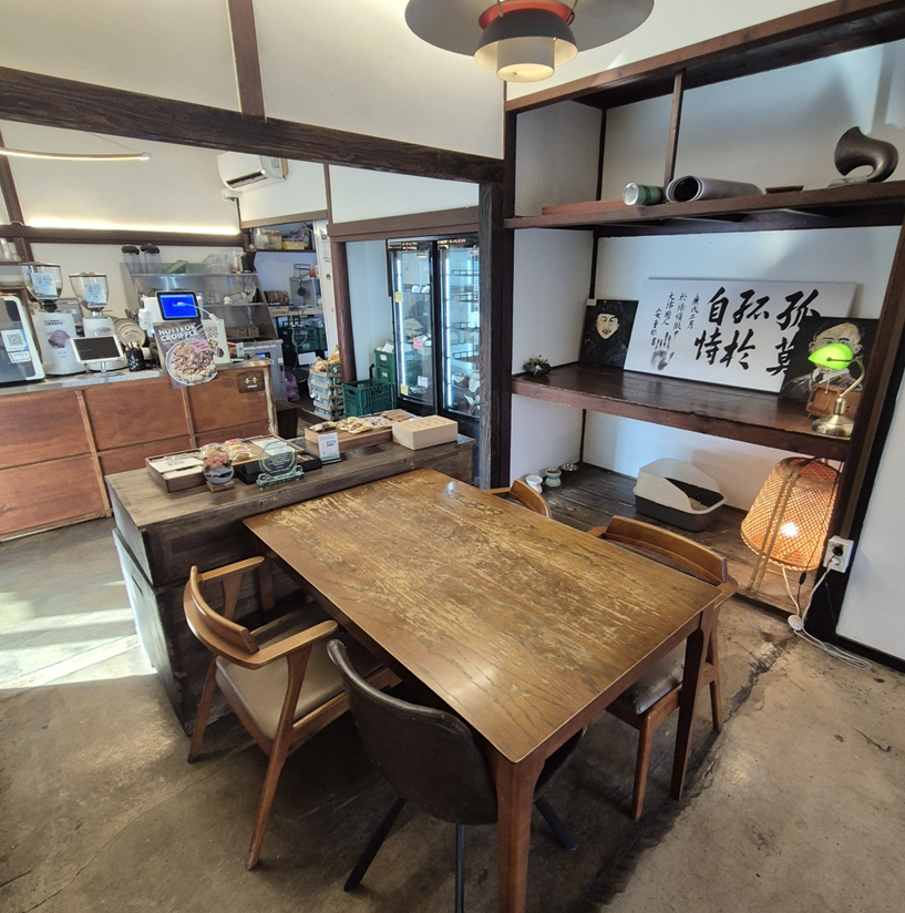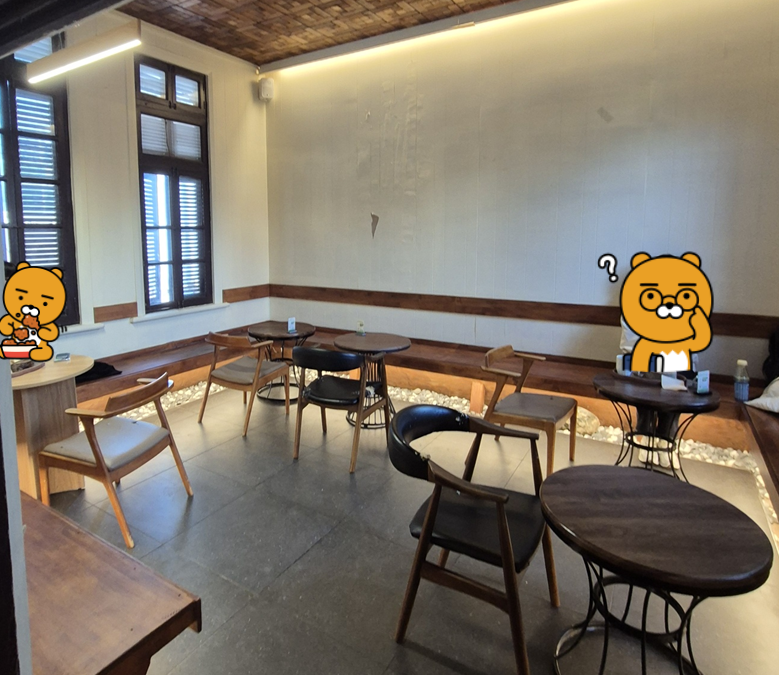 카페는 근대문화 거리와 어울리게 역사적인 분위기를 갖고 있어요. 일본식 목조 가옥처럼 카페가 꾸며져 있고, 곳곳에 독립운동가들의 그림들과 역사를 기억할 수 있는 요소들을 많이 준비해 두었습니다. 분위기가 상당히 따뜻하고 아늑하더라고요.