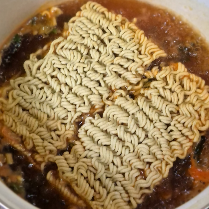 스프를 넣은 물이 끓으면 면도 함께 넣어줍니다.ㅎㅎ
