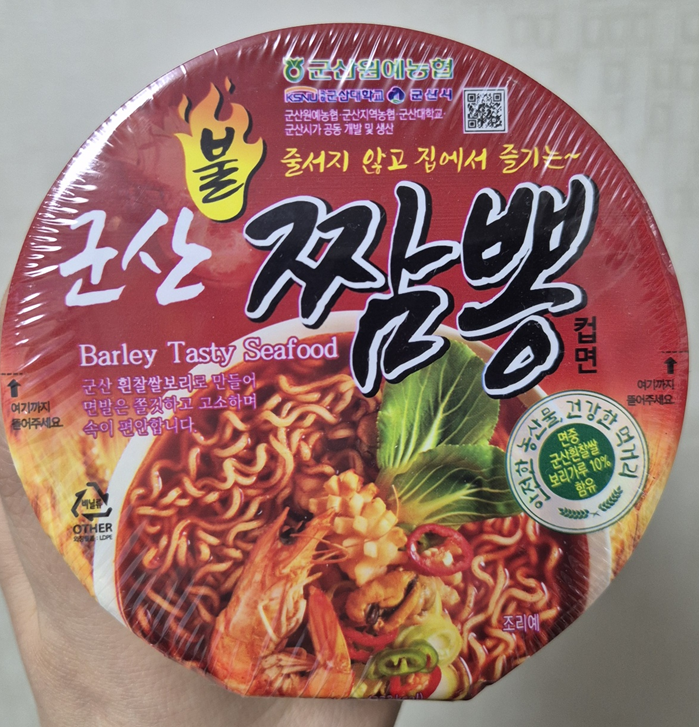 군산짬뽕 봉지라면과 컵라면 모두 생각보다 너무 맛있었습니다.ㅎㅎ 불향뿐만 아니라 시원한 해물의 맛이 깊었고 깔끔하다는 느낌이었습니다. 찰보리면이라 그런지 쫄깃하고 부드러워서 부드러운 면을 좋아하신다면 만족하며 드실 것 같아요. 군산에 가신다면 기념품으로 사 와도 좋을 것 같습니다.ㅎㅎ