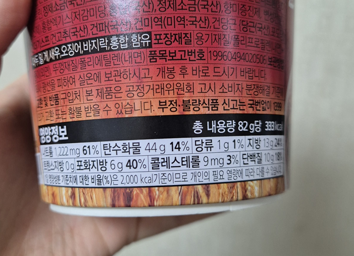 대두, 밀, 게, 새우, 오징어, 바지락, 홍합 함유