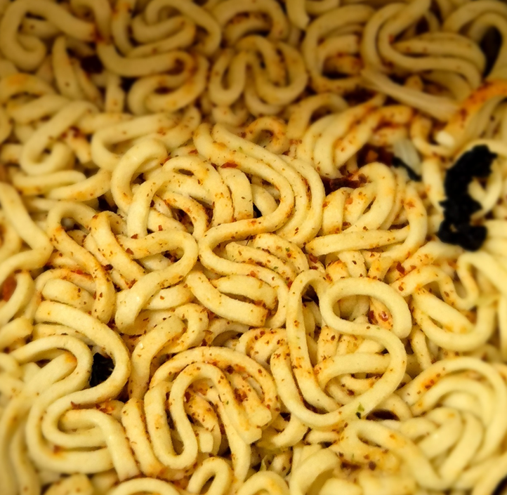 뚜껑을 열면 봉지 라면과 다르게 건더기와 함께 고춧가루가 뿌려져 있는 면이 나옵니다.ㅎ