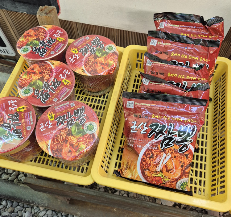 경암동 철길마을을 가서 가장 눈에 띈 것이 바로 이 라면들입니다. 군산에 있는 마트라면 판매할 것 같은데 저는 일정상 여력이 안 되어 철길마을에 구매를 했어요. 컵라면과 봉지라면 모두 구매했습니다.