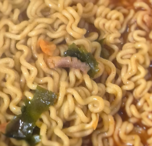 종종 동결건조 오징어도 보였는데 해물은 크게 눈에 띄지 않았어요. 제가 뽑기 운이 없었던 것일 수도 있는데 다른 분들은 그래도 골고루 잘 들어 있던 것 같습니다.
