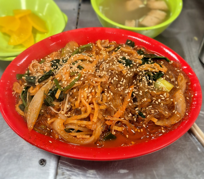 저는 매운 잡채를 주문했더니 사장님께서 맛있게 칼칼하게 해 주신다고 하셨어요. 다른 분들께는 맵기를 물어보시더라고요.ㅎㅎ 맵기가 조절되니 매운 걸 못 드시면 조금 덜 맵게 요청드리면 될 것 같아요.ㅎㅎ