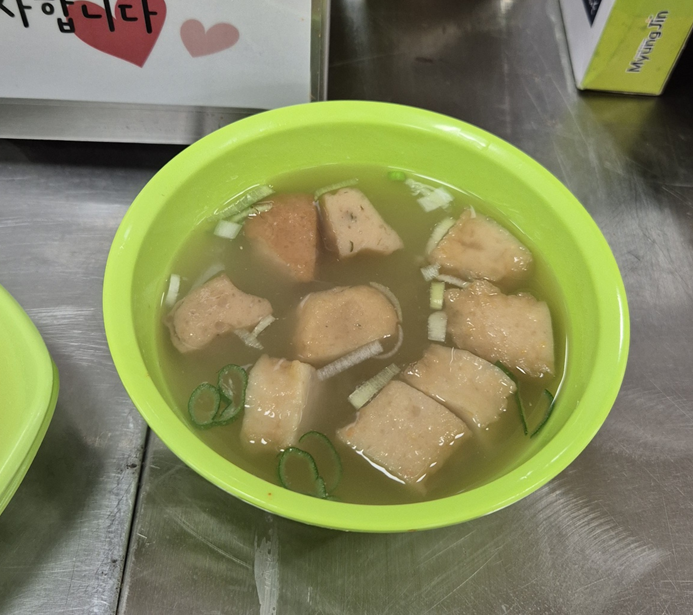 자리에 앉으면 단무지와 앞접시, 어묵 국물을 주십니다.ㅎㅎㅎ 어묵탕에 어묵도 참 많이 들어 있어요.ㅎㅎ