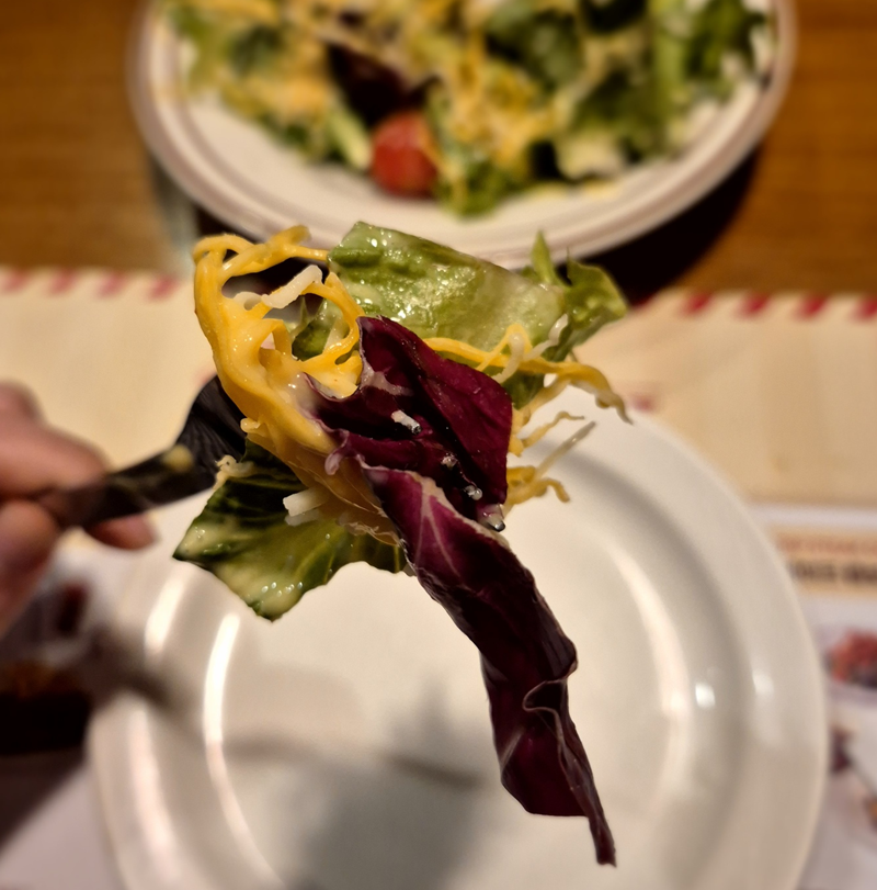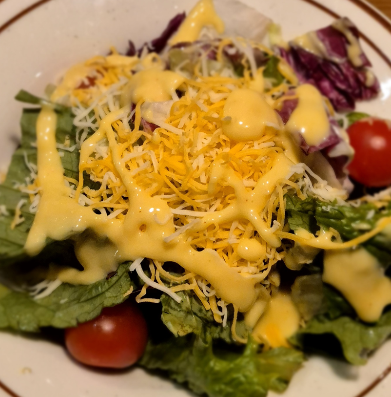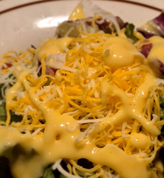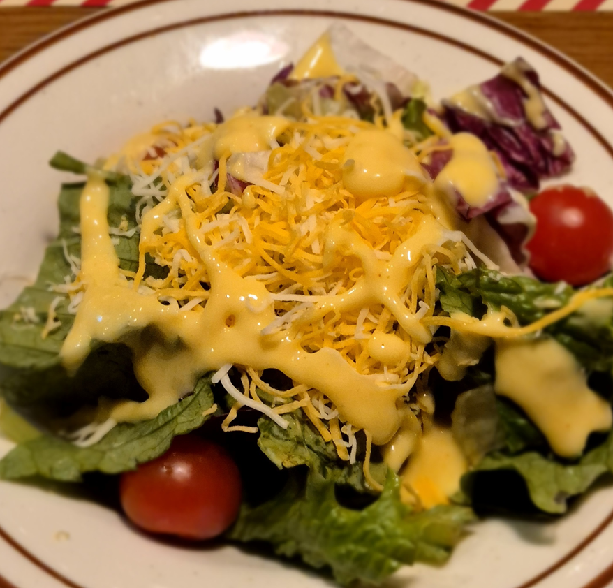 가든 샐러드는 치즈들이 잔뜩 올라가 있습니다.ㅎㅎㅎ 소스로는 허니머스타드로 주문했어요. 달달한 립과 함께 달달한 허니머스터드를 먹기 위해 주문했습니다.