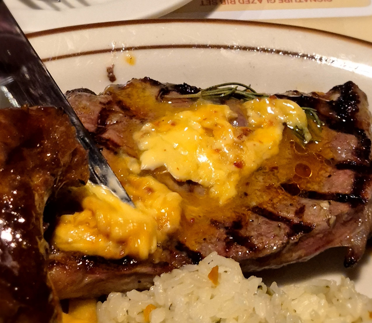 스테이크 위의 버터를 살살 녹여 양껏 잘라 먹으면 됩니다.ㅎㅎ