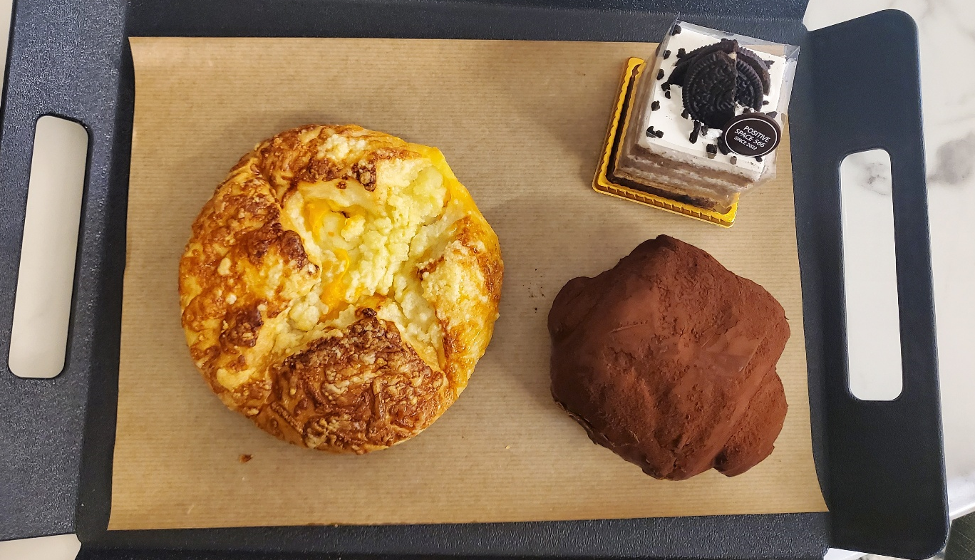 하얀색 철제 테이블 위에 빵들이 있는데 제가 갔을 때에는 빵이 많이 없었어요ㅠ 그래서 선택의 폭이 좁았는데 나중에 빵이 새로 채워지더라고요! 다양한 빵을 보지 못해서 아쉬웠으나 그래도 저희 입맛에 원하는 빵들을 골라 담을 수 있었습니다 ㅎ 베이커리, 커피뿐만 아니라 브런치나 샐러드, 파스타도 판매하고 있어서 식사를 못하신 분들은 챙겨 드실 수 있을 거 같아요 ㅎ
