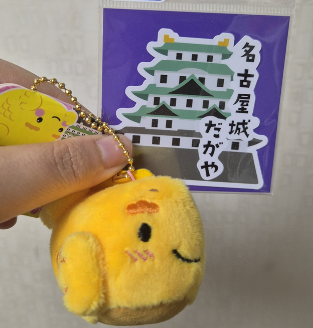저는 아이스크림집 뒤에 있는 기념품샵에서 금샤치를 본 따 만든 마스코트 하치마루 인형과 나고야성 스티커를 한 장 구매했습니다.