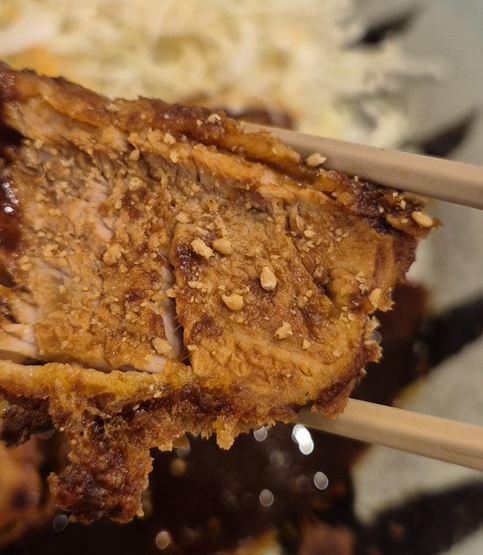 지방이 적기 때문에 천천히 먹을 수록 식으면서 부드러운 식감이 조금은 사라지기도 합니다. 그리고 소스에 절여져 바삭한 튀김도 느낄 수 없고, 그나마 있는 튀김옷도 다 분리가 되더라고요! 그래서 따뜻할 때 먹어야 제대로 된 맛을 즐길 수 있습니다. ㅎㅎ