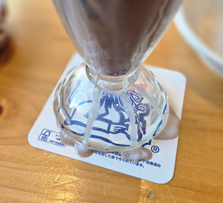 그리고 빠르게 먹어야 하는 이유가 있는데, 이렇게 넘치고 녹아서 금방 잔과 테이블이 더러워지더라고요! 이 부분이 조금은 아쉬웠습니다.ㅠㅠ