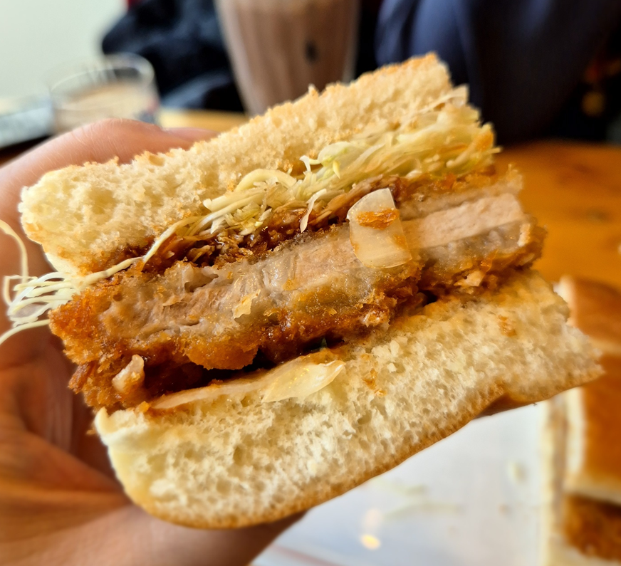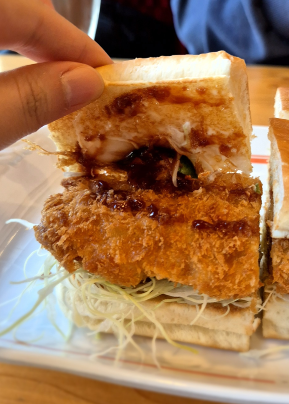 그리고 친구와 함께 먹으려고 주문한 가츠산도입니다.ㅎㅎㅎ 저는 작은 돈까스 샌드위치를 생각했는데 크기에 놀랐습니다. ㅎㅎ 정말 두껍고 컸어요!