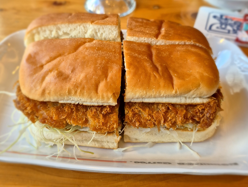 그리고 포크 커틀렛 샌드위치도 함께 주문했어요.(990엔) 그리고 4등분으로 잘라달라고 부탁했습니다.ㅎㅎ 영어를 못 하시는 직원이었는데 얼레벌레 소통이 가능하더라고요.ㅎㅎㅎ