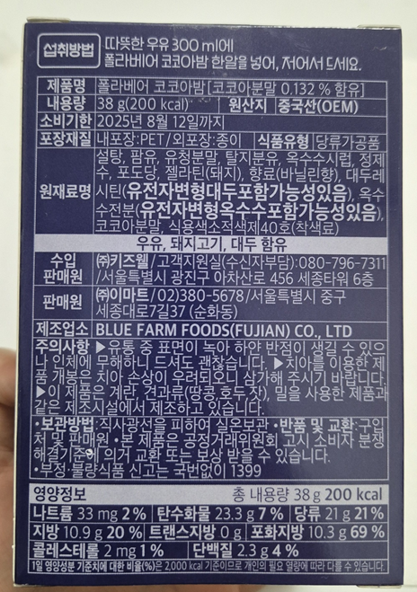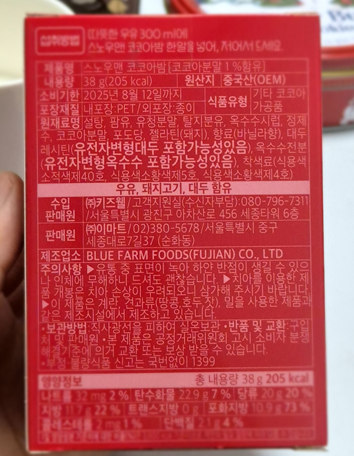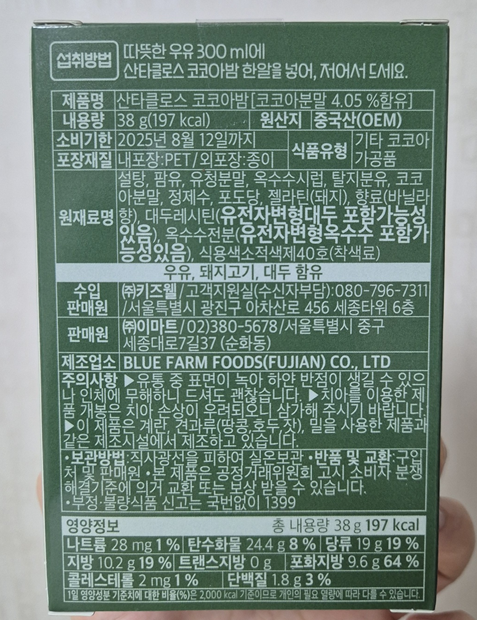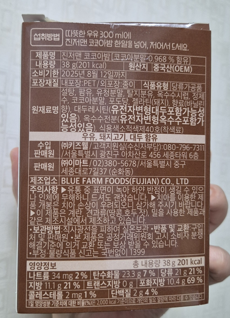 성분은 유전자변형 대두, 옥수수 포함 가능성이 있는 것을 보고 조금 아차 싶었지만 처음이자 마지막 코코아밤이 될 것 같아 그냥 먹기로 했습니다. ㅎㅎ 영양 정보는 예상했던 데로 네요.ㅎㅎ