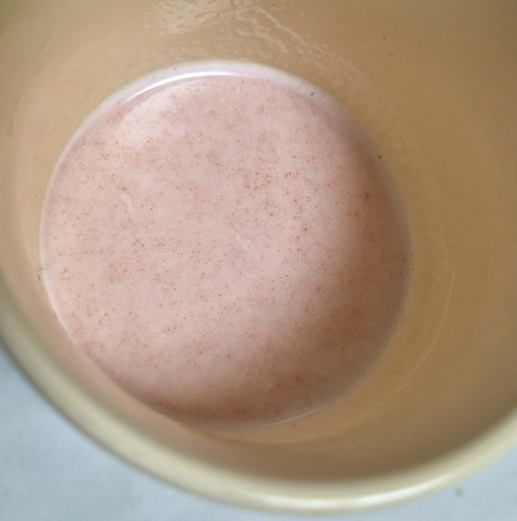 폴라베어는 다른 코코아밤보다 빨간색이 많아서 그런지 우유도 분홍빛이 돌았습니다.