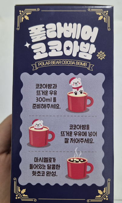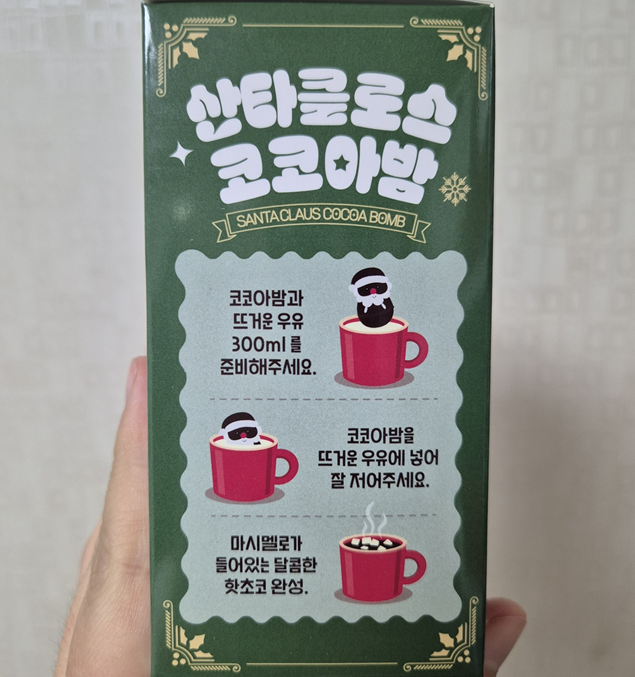 먼저 산타크클로스 코코아밤입니다. 종류마다 마시는 방법에 들어가는 그림이 다르더라고요.ㅎ 너무 귀여웠습니다.