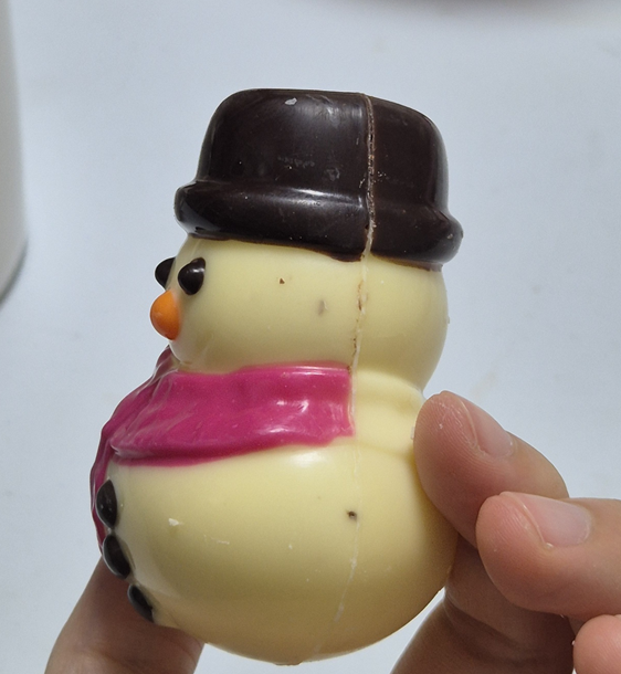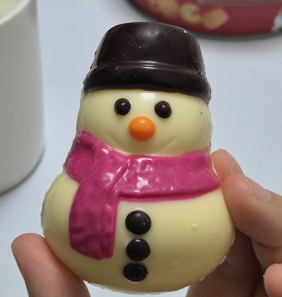 스노우맨에는 마시멜로우가 9개 정도 들어 있습니다. 초코가 녹은 우유의 맛은 산타클로스보다 더 달아서 저는 우유를 더 넣어 마셨습니다.