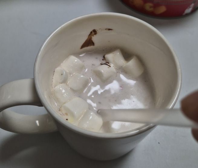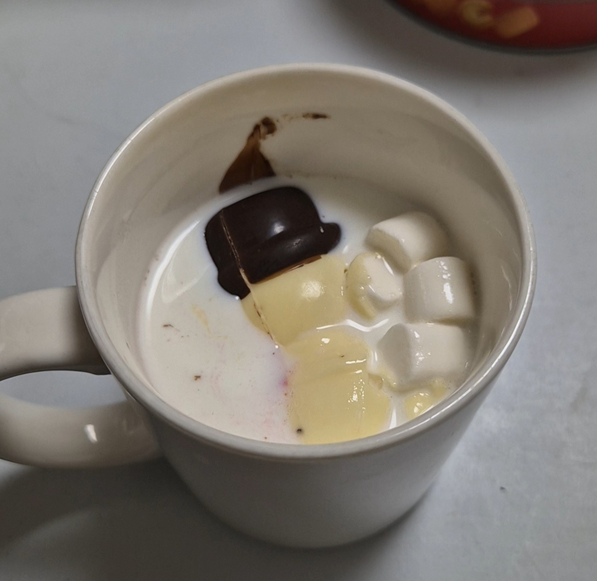 진저맨은 가장 적은 양의 마시멜로우가 들어갔습니다. 6개 정도 들어 있는데 저는 사실 마시멜로우를 즐기지 않아 가장 먹기가 편했던 것 같습니다. ㅎㅎ 하지만 우유가 정말 달아서 우유를 조금 더 추가했어요. ㅎㅎ