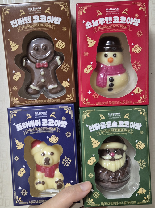 그리고 마시멜로우는 산타클로스가 가장 많이 들었고, 폴라베어, 스노우맨이 9개씩 들었습니다. 진저맨이 가장 적게 들어갔으니 마시멜로우를 좋아한다 싶으면 산타클로스, 싫어한다 싶으면 진저맨들 고르시면 될 것 같아요.