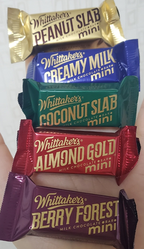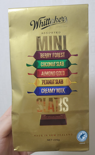 휘태커스 초콜릿도 정말 유명한 뉴질랜드 초콜릿이죠! 저는 여러 가지 맛을 맛보고 싶어서 패키지로 구매했습니다. ㅎㅎ 베리 포레스트, 코코넛, 아몬드, 땅콩, 우유 맛별로 세 개씩 들어있어요. 개인적으로 베리가 맛있었습니다! 초콜릿 안에 밀크티 펄보다 작은 크기의 젤리가 들어 있는데 포도향이 나면서 쫄깃하고 맛있더라고요!ㅎㅎ 과일맛, 과일향 나는 디저트를 잘 안 먹는데 가장 맛있게 먹었습니다. ㅎㅎ