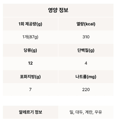 크럼블 쿠키링의 영양정보가 업데이트 되었네요! 카라멜 믹스 쿠키 크럼블이 올라간 크럼블 쿠키링입니다.ㅎㅎ