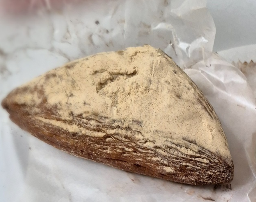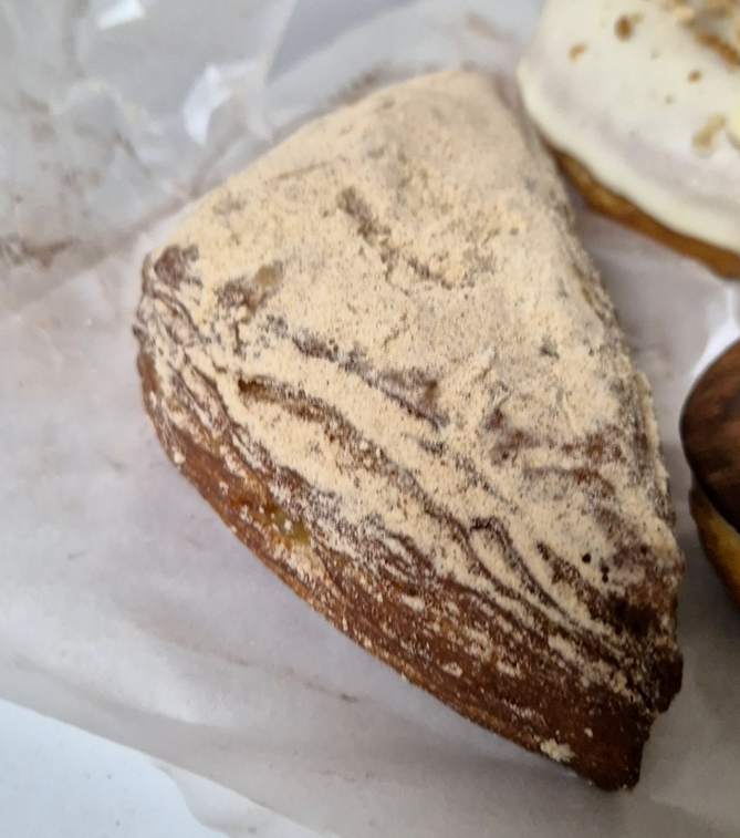 크로아상으로 만든 파이 도넛 안에 사과 필링이 들어간 시나몬 애플파이입니다.ㅎㅎ 결 위로 시나몬 파우더가 잔뜩 뿌려져 있어 한 입 베어 물면 시나몬 향이 풍깁니다.ㅎㅎㅎ